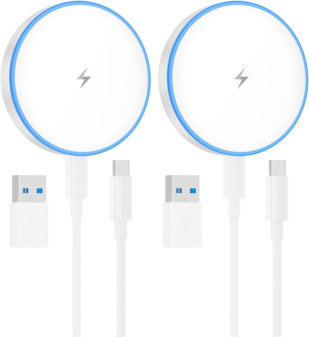 CompareIntroducing the MagSafe Charger 2 Pack – the ultimate solution for fast and efficient wireless charging for your iPhone 16/15/14/13/12 Series and AirPods 3/2/Pro. This magnetic MagSafe charging pad is designed to provide a seamless and convenient charging experience, with a sleek and compact design that fits perfectly on any surface.